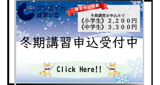 - ★『冬期講習申込キャンペーン』実施中!【小学生2,200円/中学生3,300円で冬期講習!】★