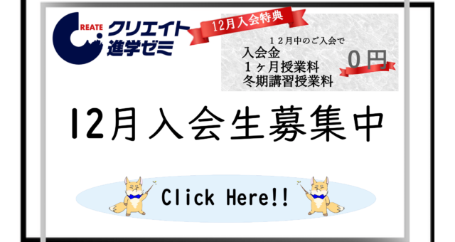 - ★『12月入会キャンペーン』実施中!【1ヶ月分授業料+冬期講習授業料+入会金無料】★