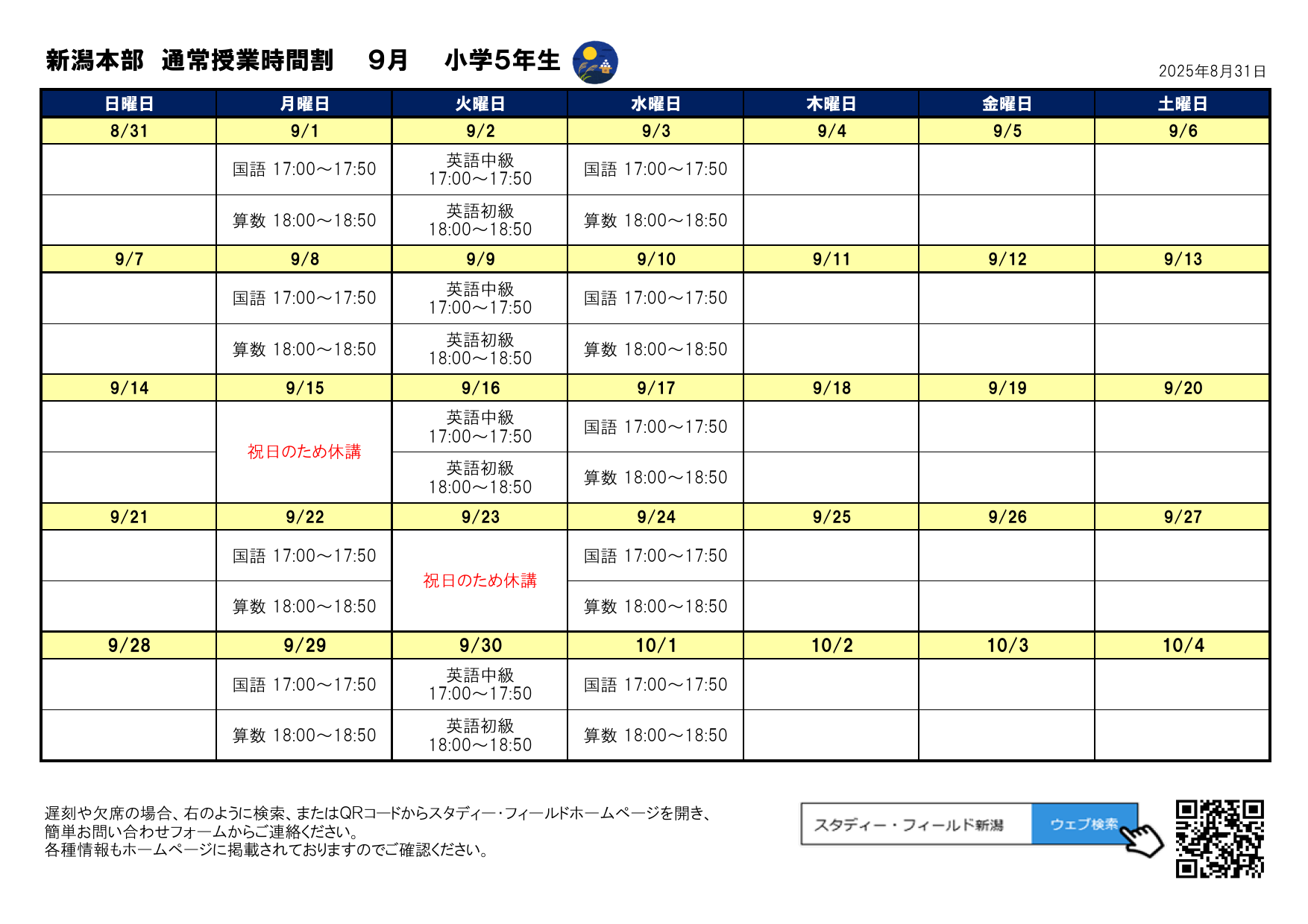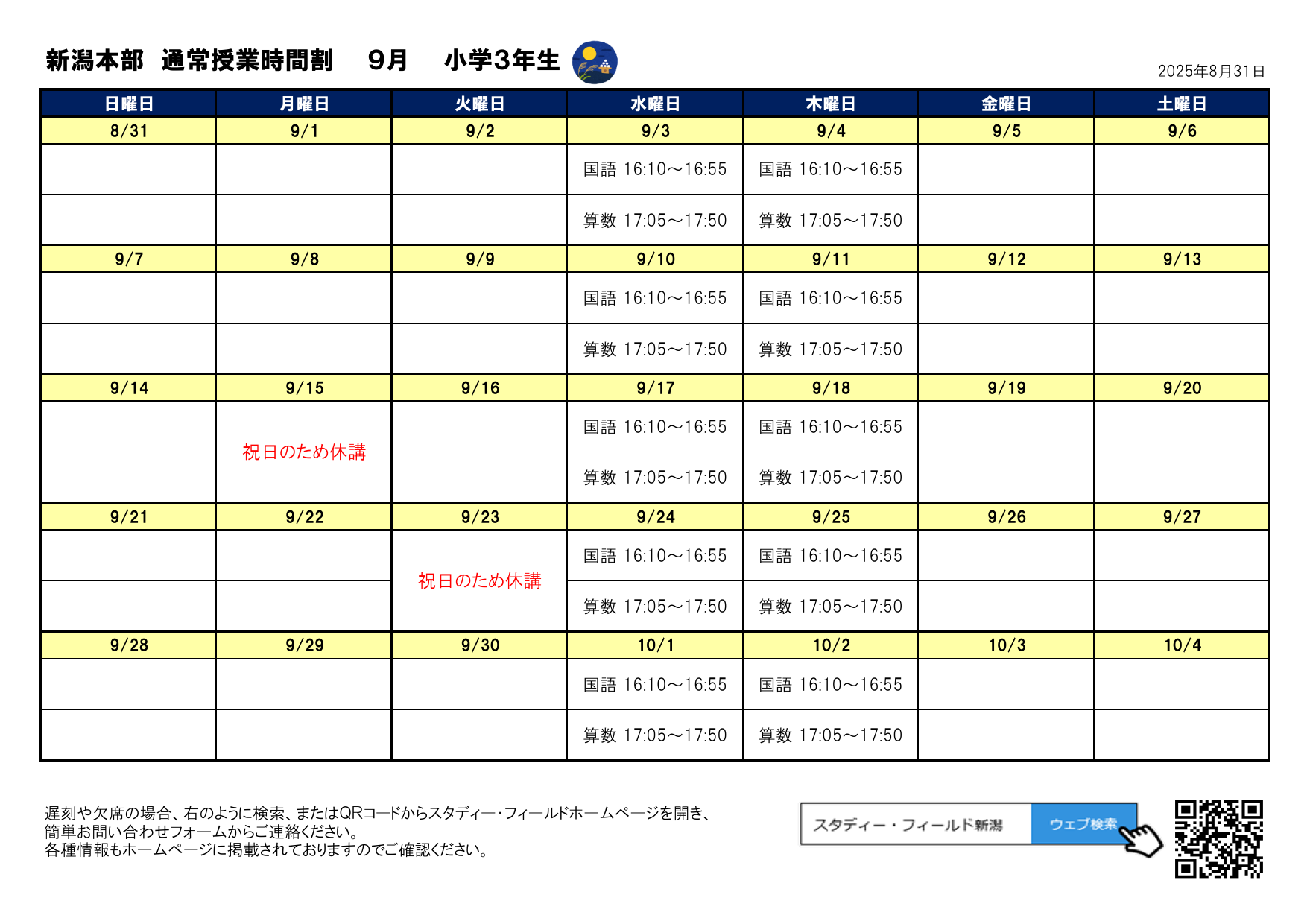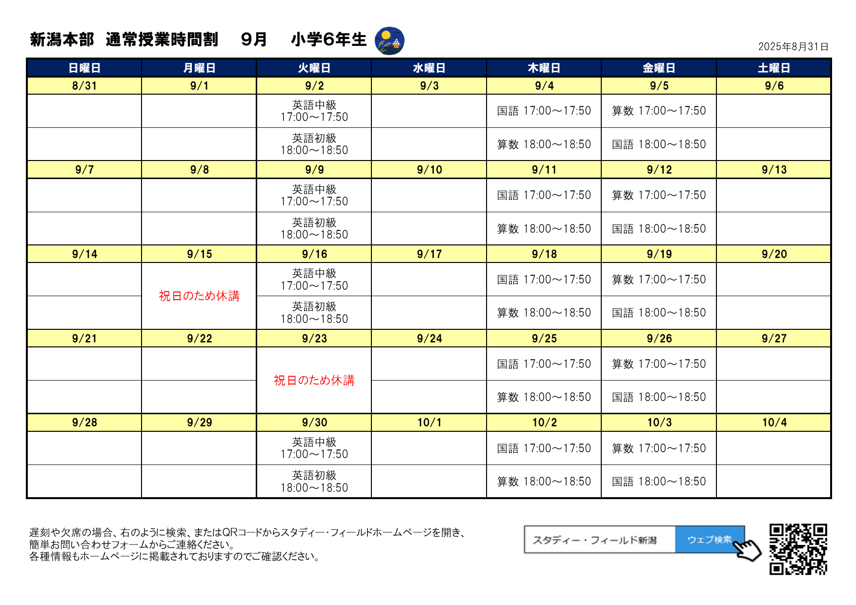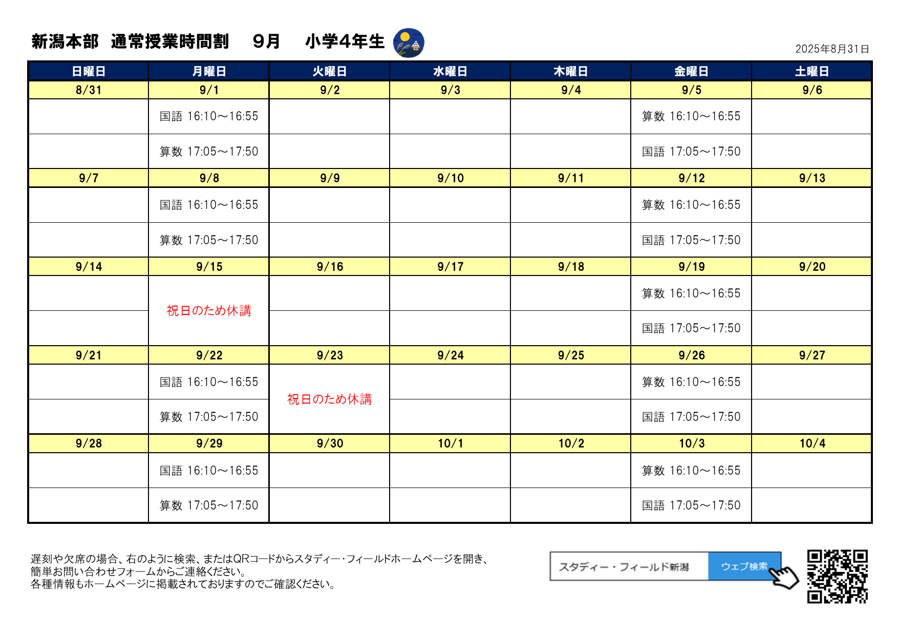 月間予定表(2025年9月)