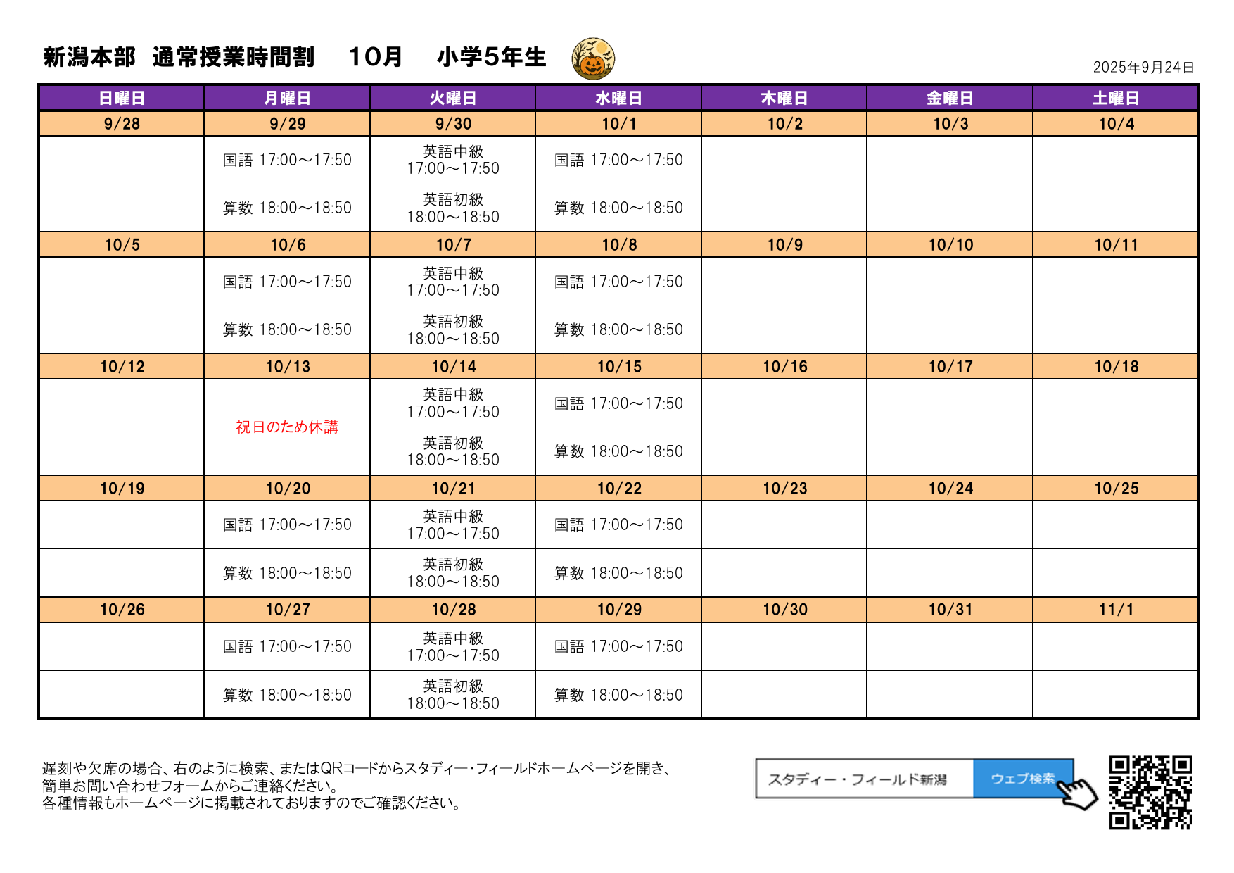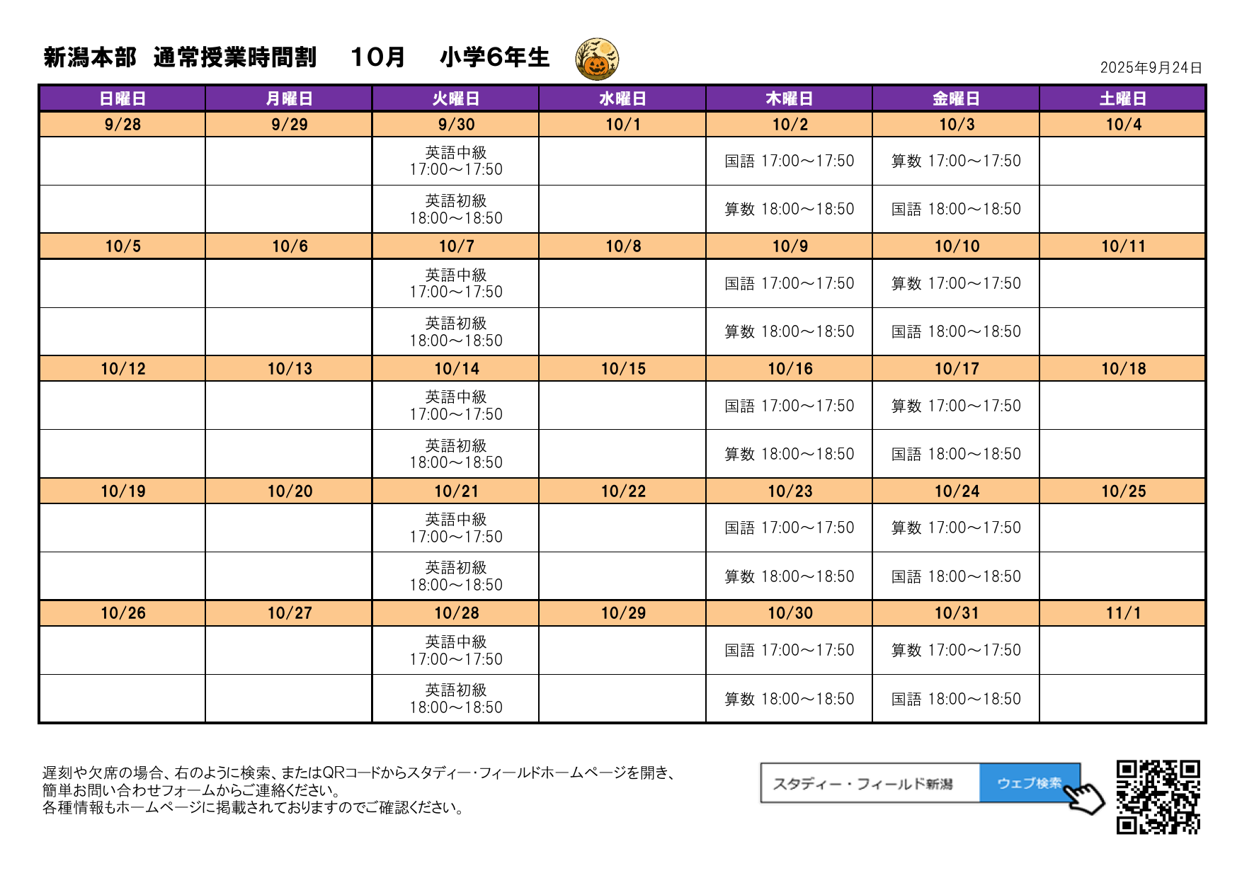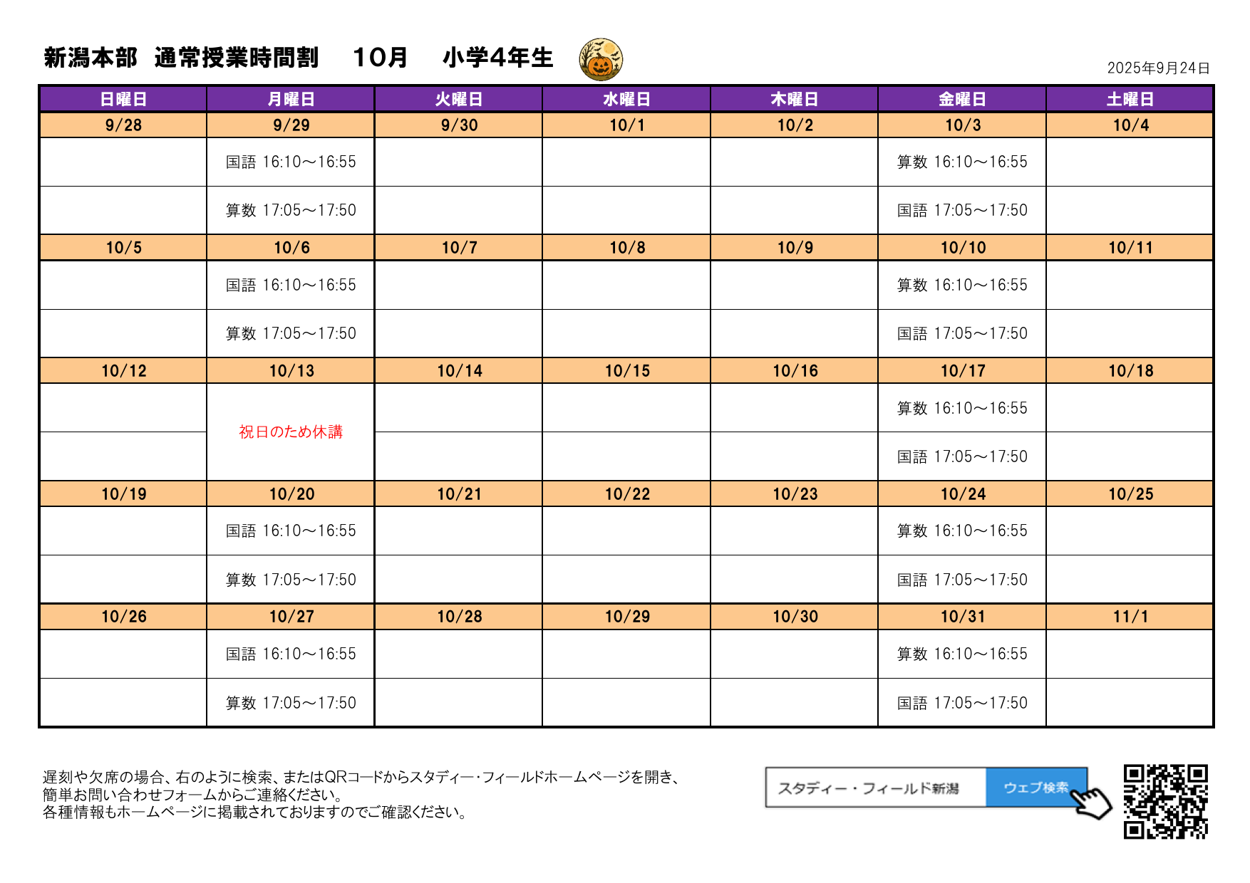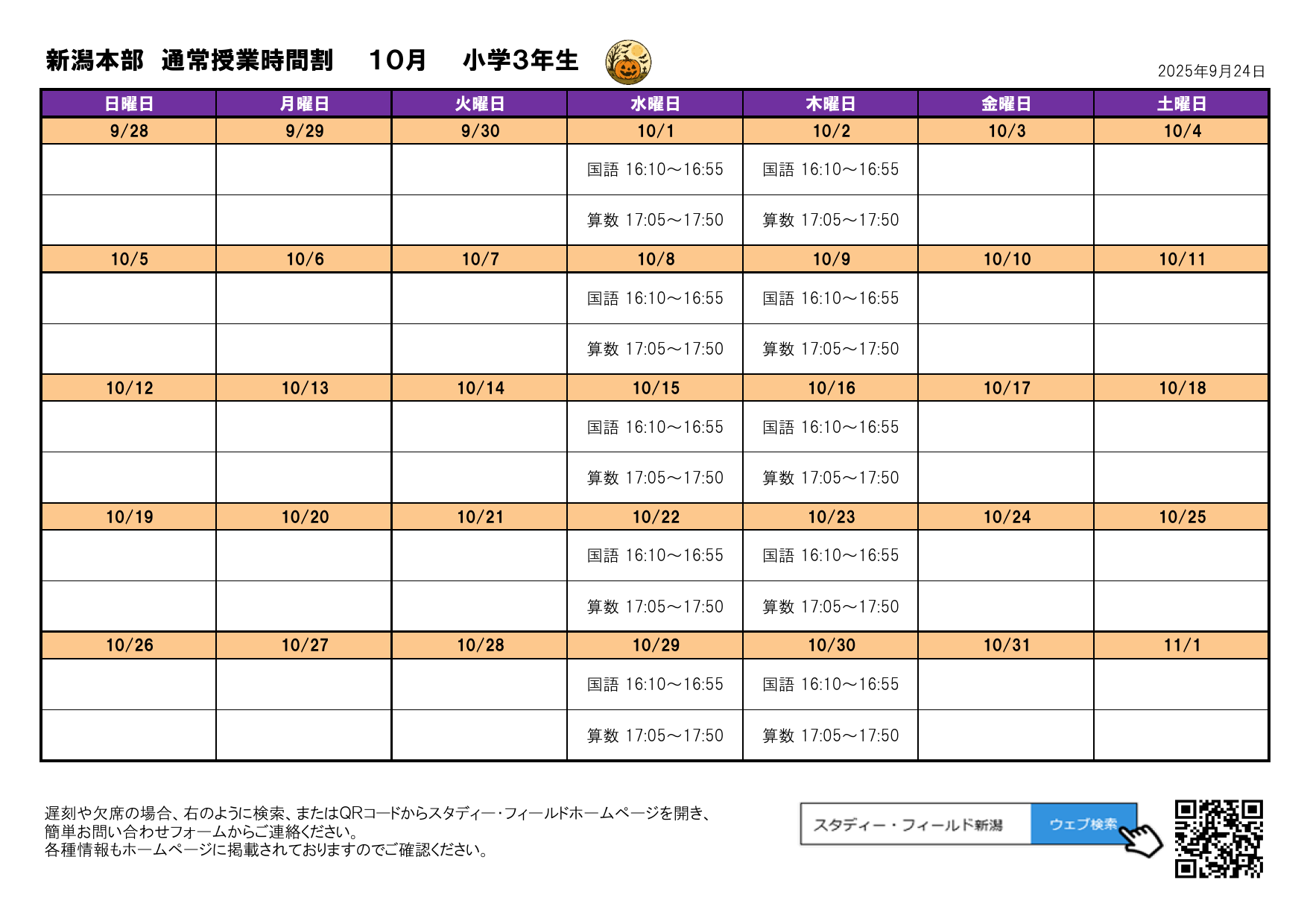 月間予定表(2025年10月)
