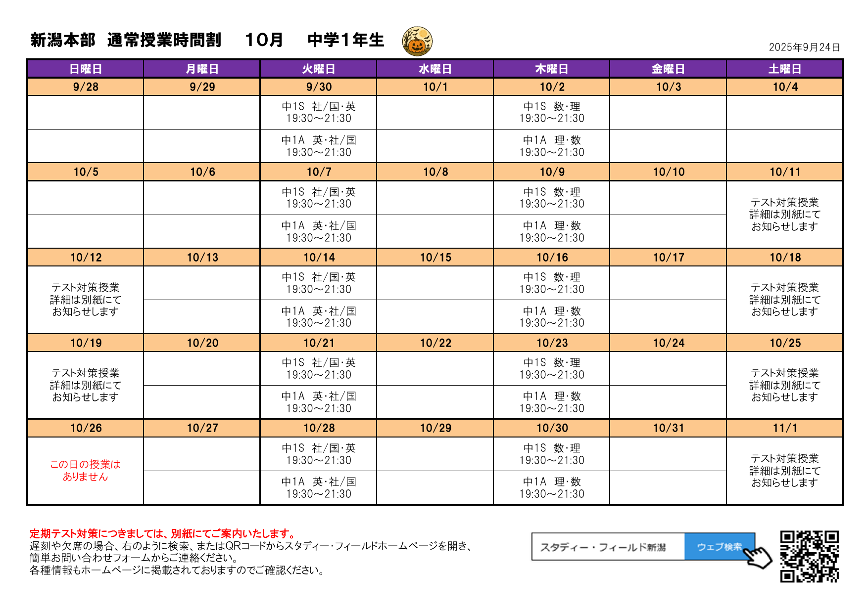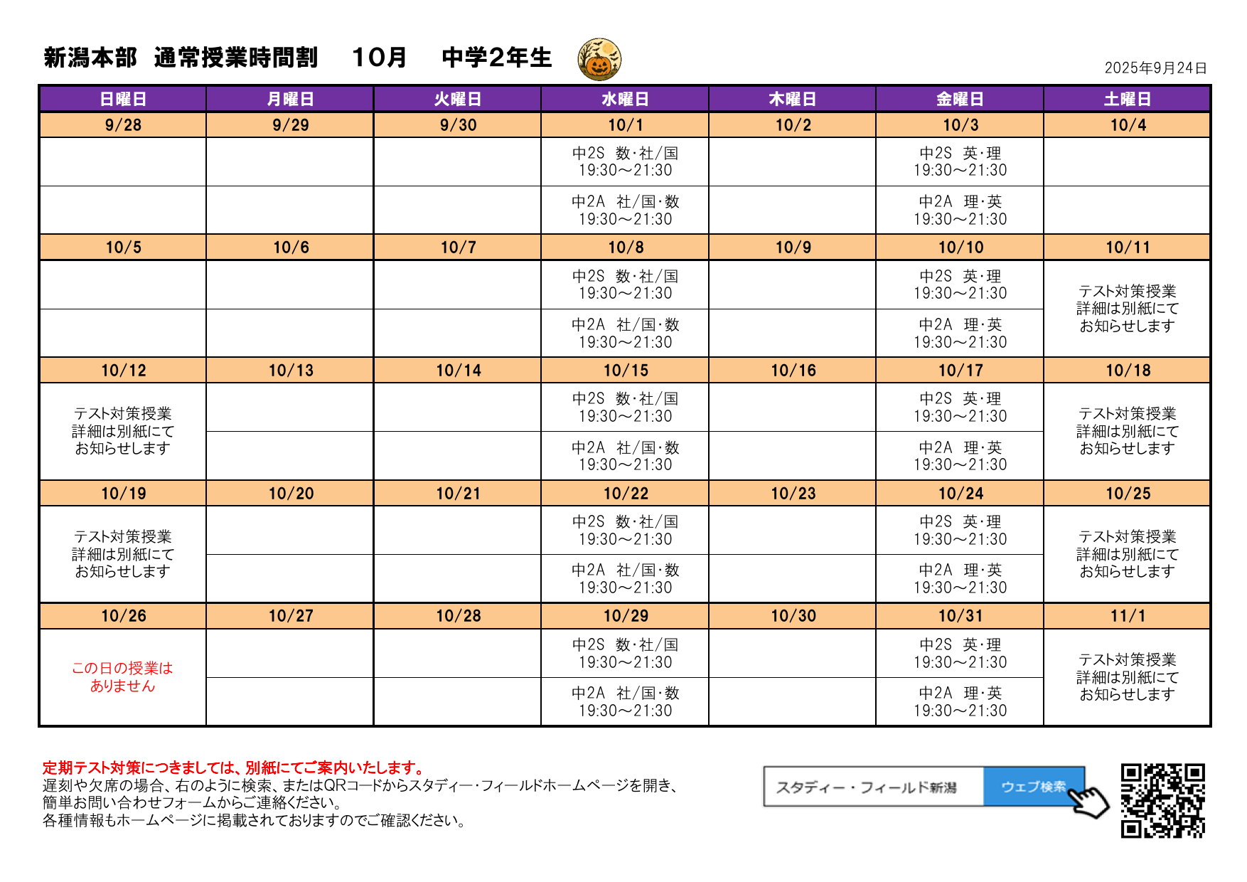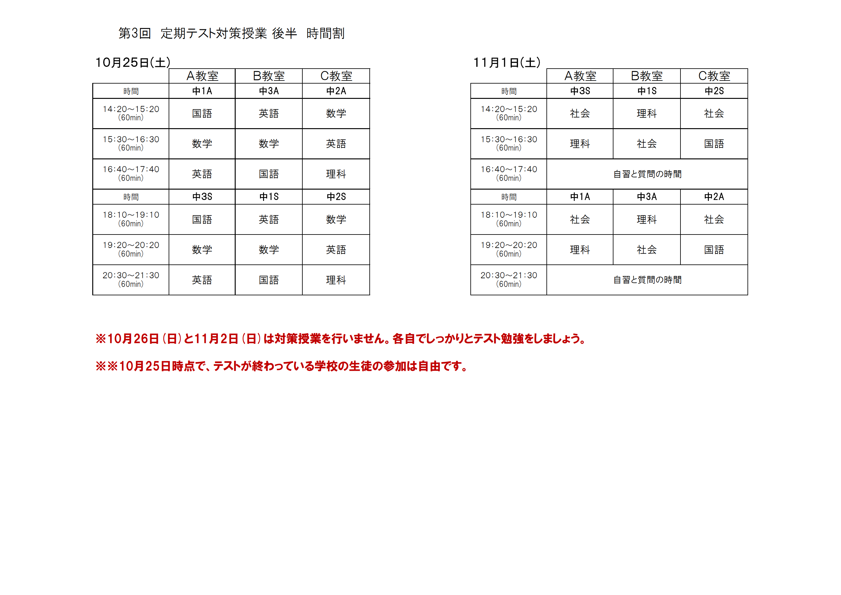 テスト対策授業日程