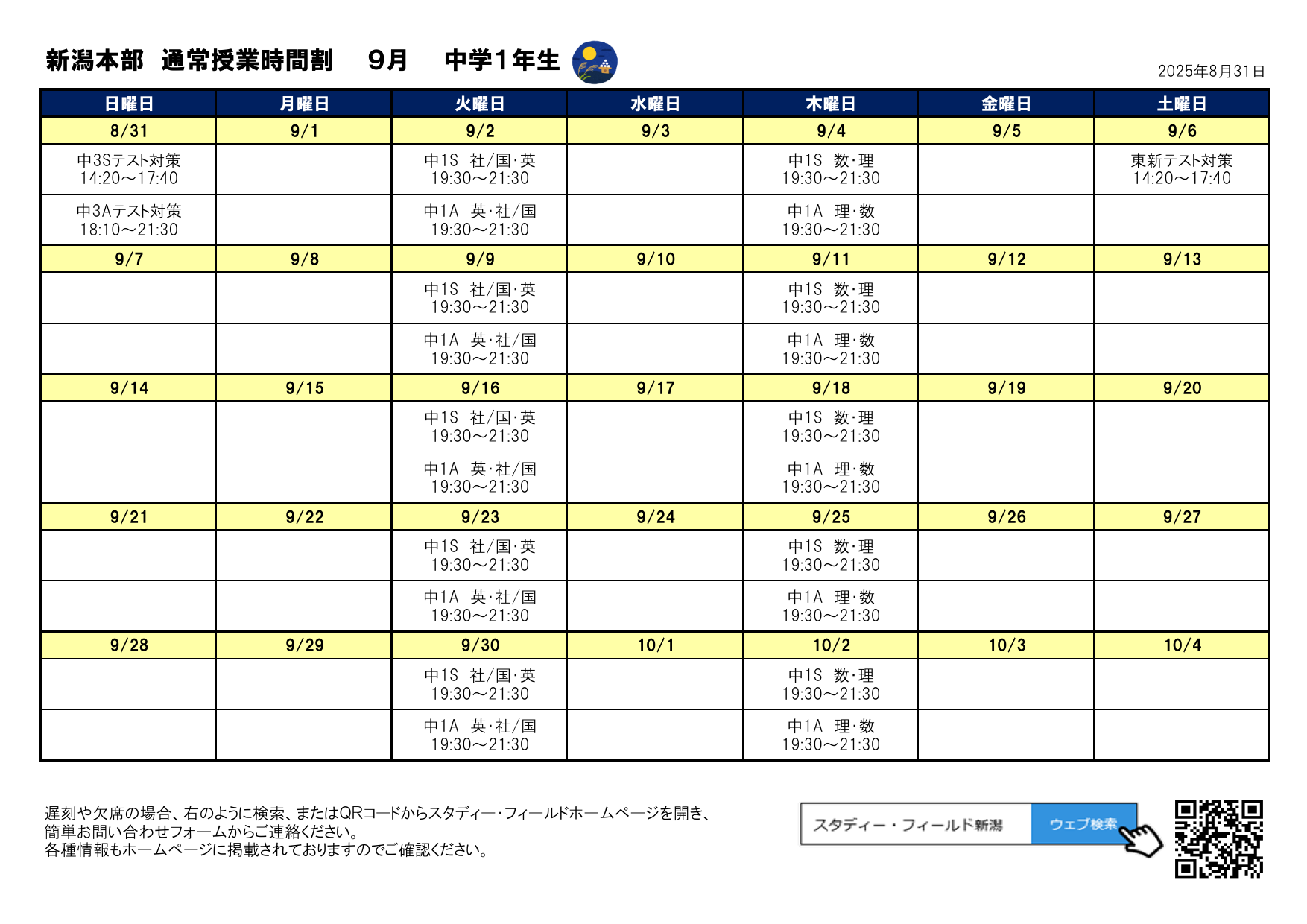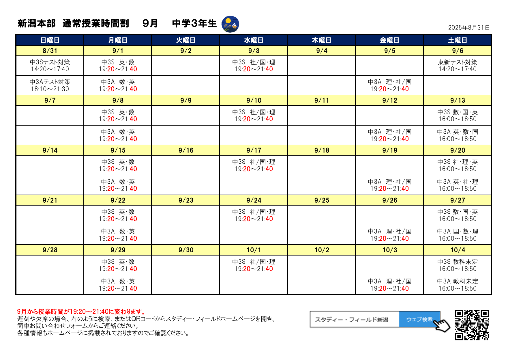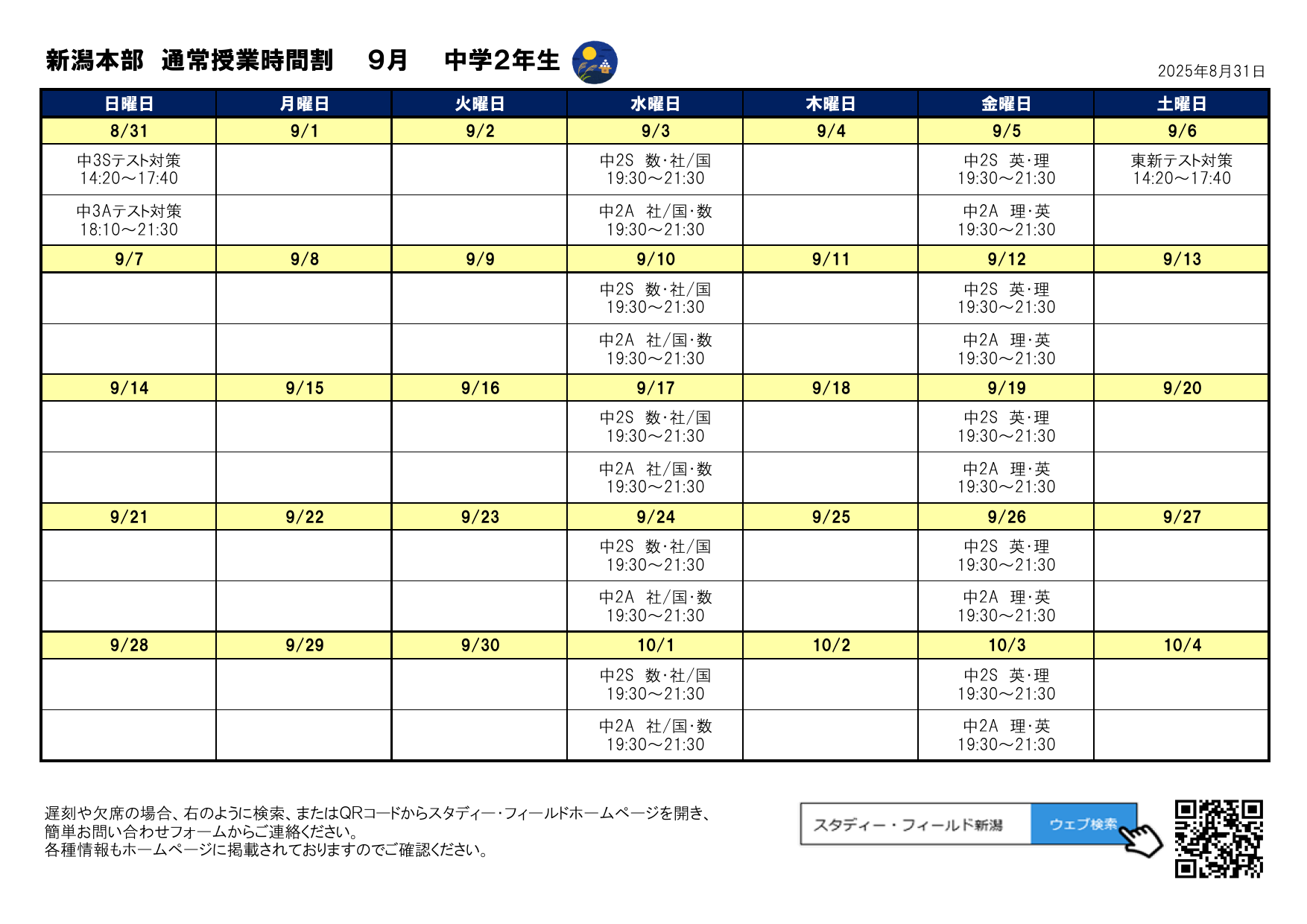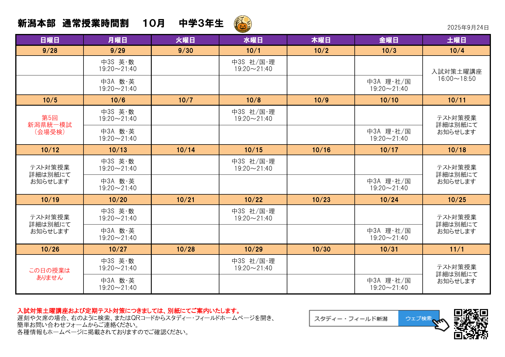 テスト対策授業日程