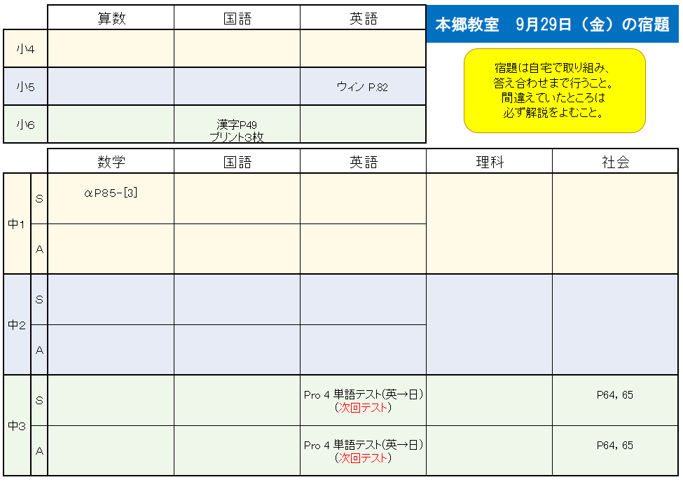 - 宮原教室 11月21日の宿題を公開しました