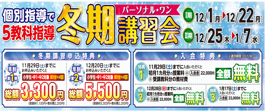 11月のパーソナル・ワンは、期末テストに向けて全力で立ち向かいます!! - 2025年11月01日
